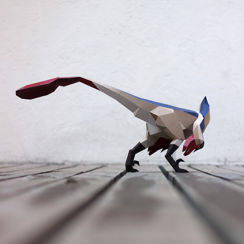 This Velociraptor measures 56cm long and needs 12 A4 heavyweight paper sheets in order to be assembled.
